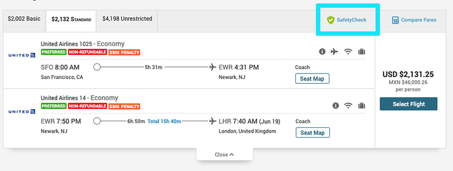 This content is updated every 24 hours, so travelers can be sure the information is up to date and accurate. And a bonus for businesses and travel managers: there’s no additional cost to use Air SafetyCheck and nothing for you to connect or set up. Here’s how you’ll know it’s available: