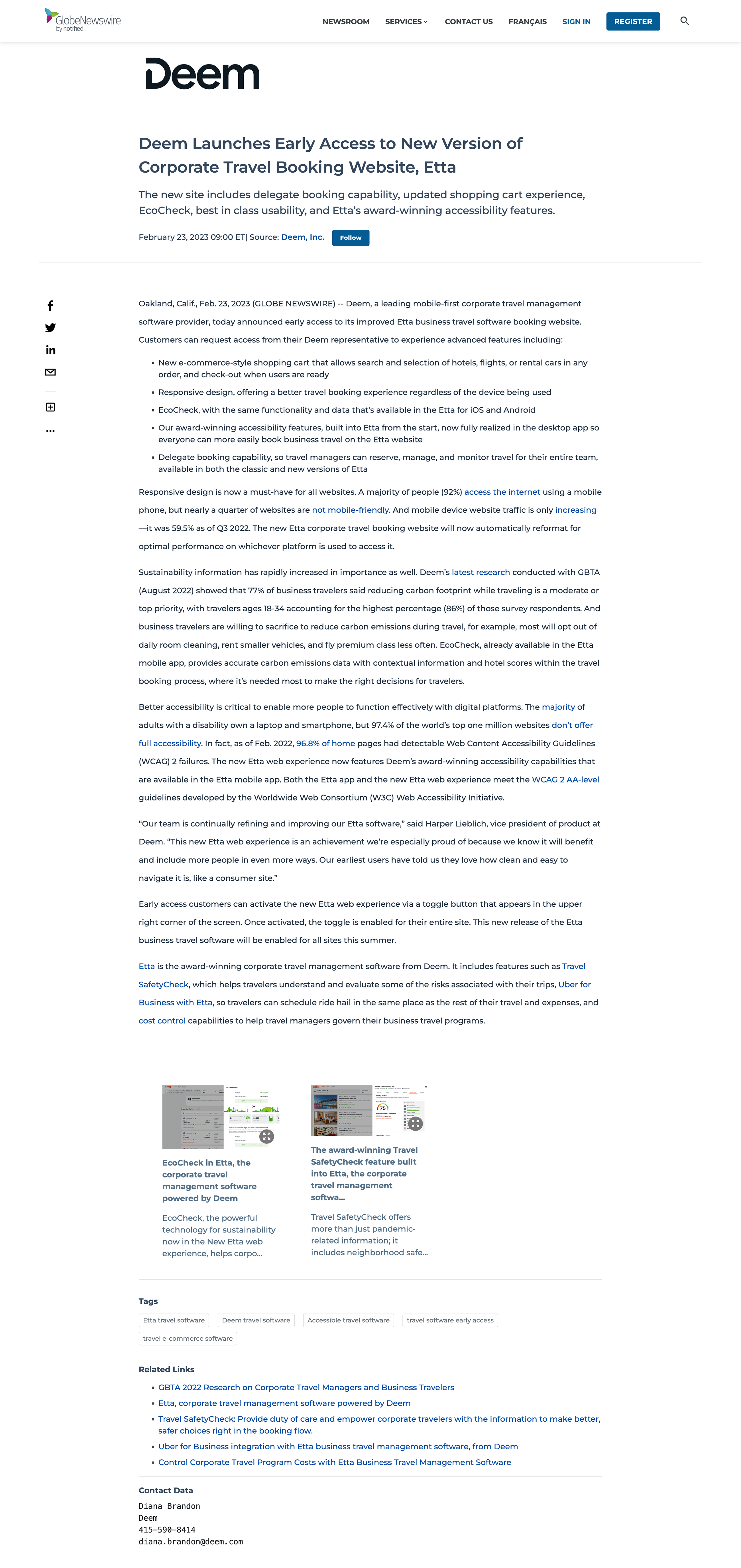 Deem Launches Early Access to New Version of Corporate Travel Booking Website, Etta